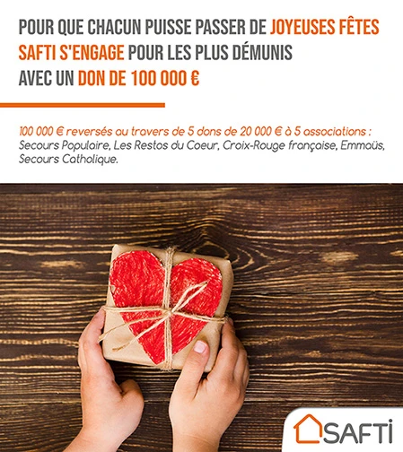 La période de crise actuelle touche tout le monde et notamment les personnes les plus fragiles. Afin de permettre à tous de passer un joyeux Noël, le réseau immobilier SAFTI a souhaité faire un don de 100 000 € en faveur des plus démunis.